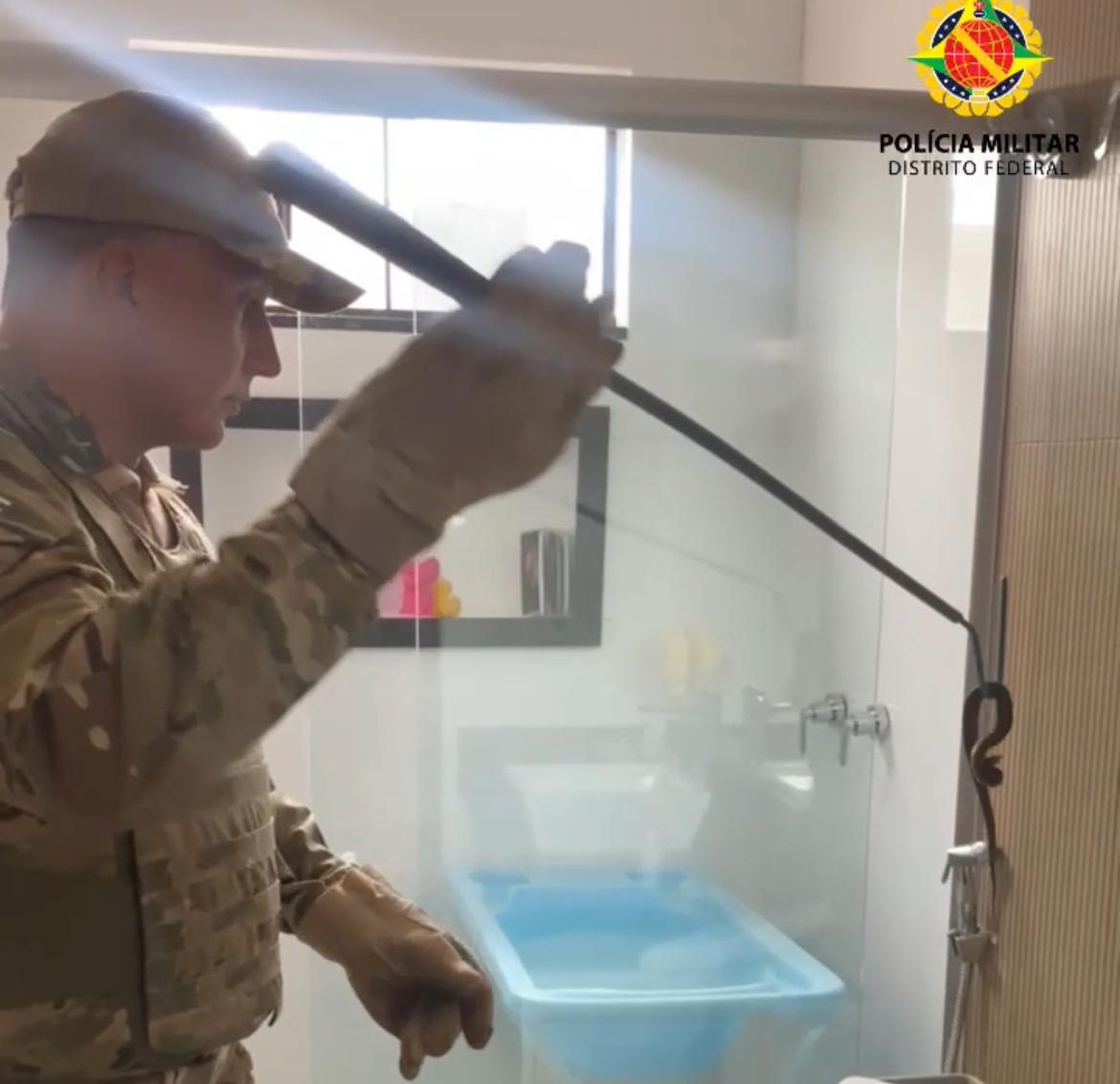 O Batalhão de Policiamento Militar Ambiental (BPMA) foi acionado por volta das 9h50 desta quarta-feira (17/9) para retirar uma jararaca da caixa de um vaso sanitário de uma residência no Condomínio Alto da Boa Vista, em Sobradinho.